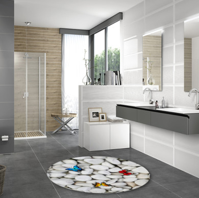 Beyaz Taşlar Üzerinde Renkli Kelebekler İkili Banyo Paspas Seti ürününü evinizden sipariş verebilirsiniz Dekoratif Halılar