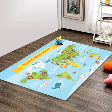 Eğlenceli Dünya Haritası Dekoratif Halı