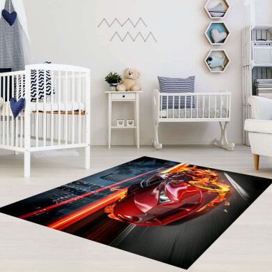 Kırmızı Yarış Arabası Çocuk Odası Halısı