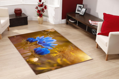Mavi Çiçekli Dekoratif Halı ürününü evinizden sipariş verebilirsiniz Dekoratif Halılar