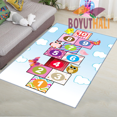 Seksek Kelebek Kuş Desenli Kız Çocuk Odası Halısı