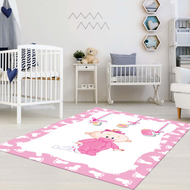 Sevimli Bebek Pembe Çocuk Odası Halısı